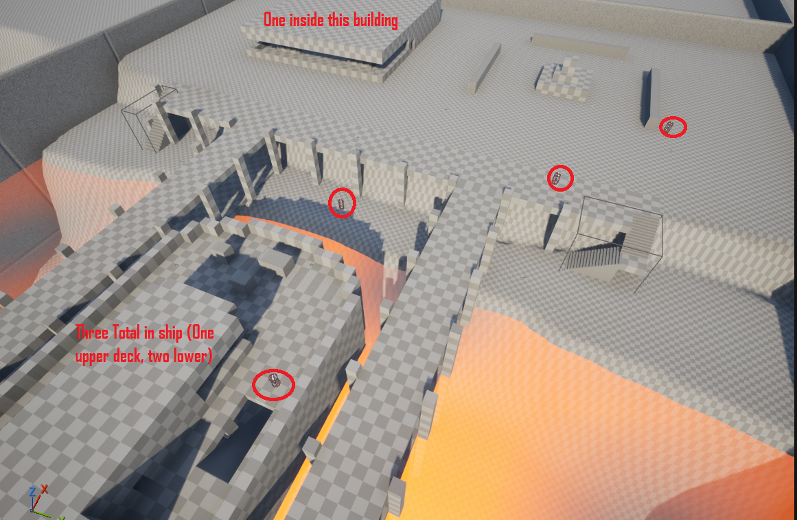 Finally I want to more clearly mark and direct players through objectives, possibly through text, or more clear level design, and I want choices of routes to feel more meaningful, maybe by allowing player to avoid things like the upper deck of the ship entirely, while having to work harder to open the cargo door